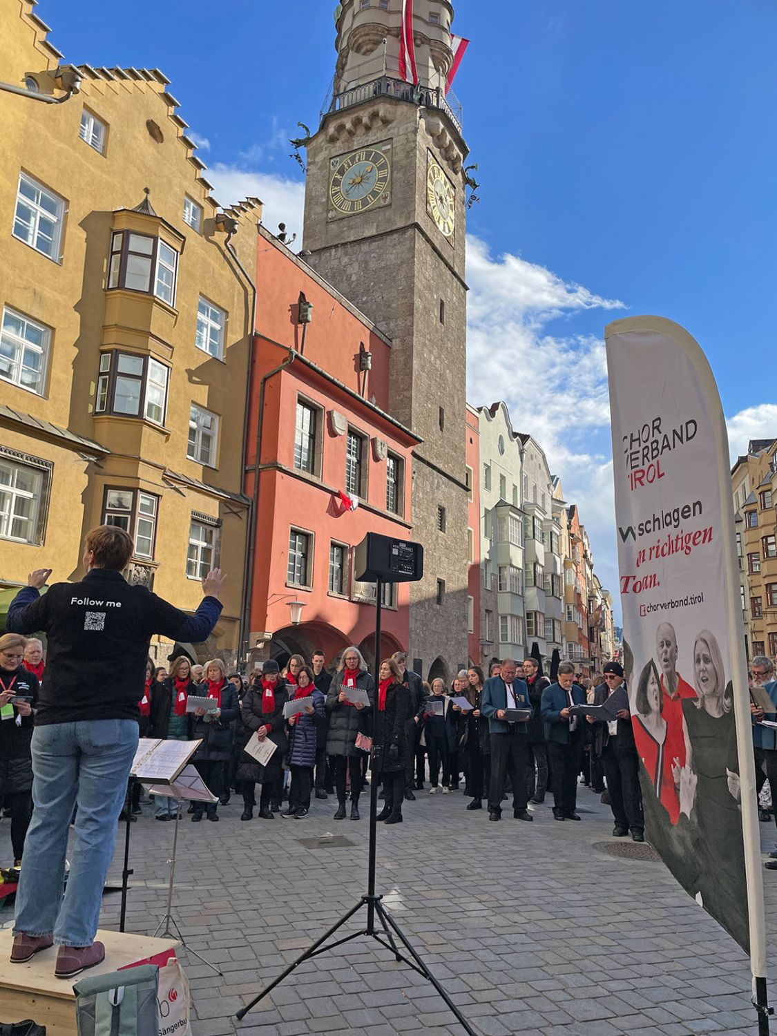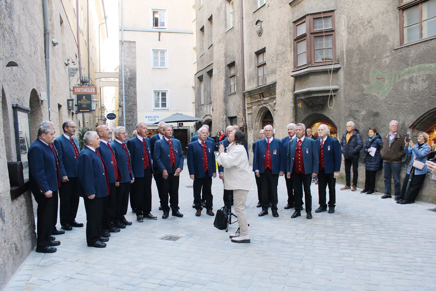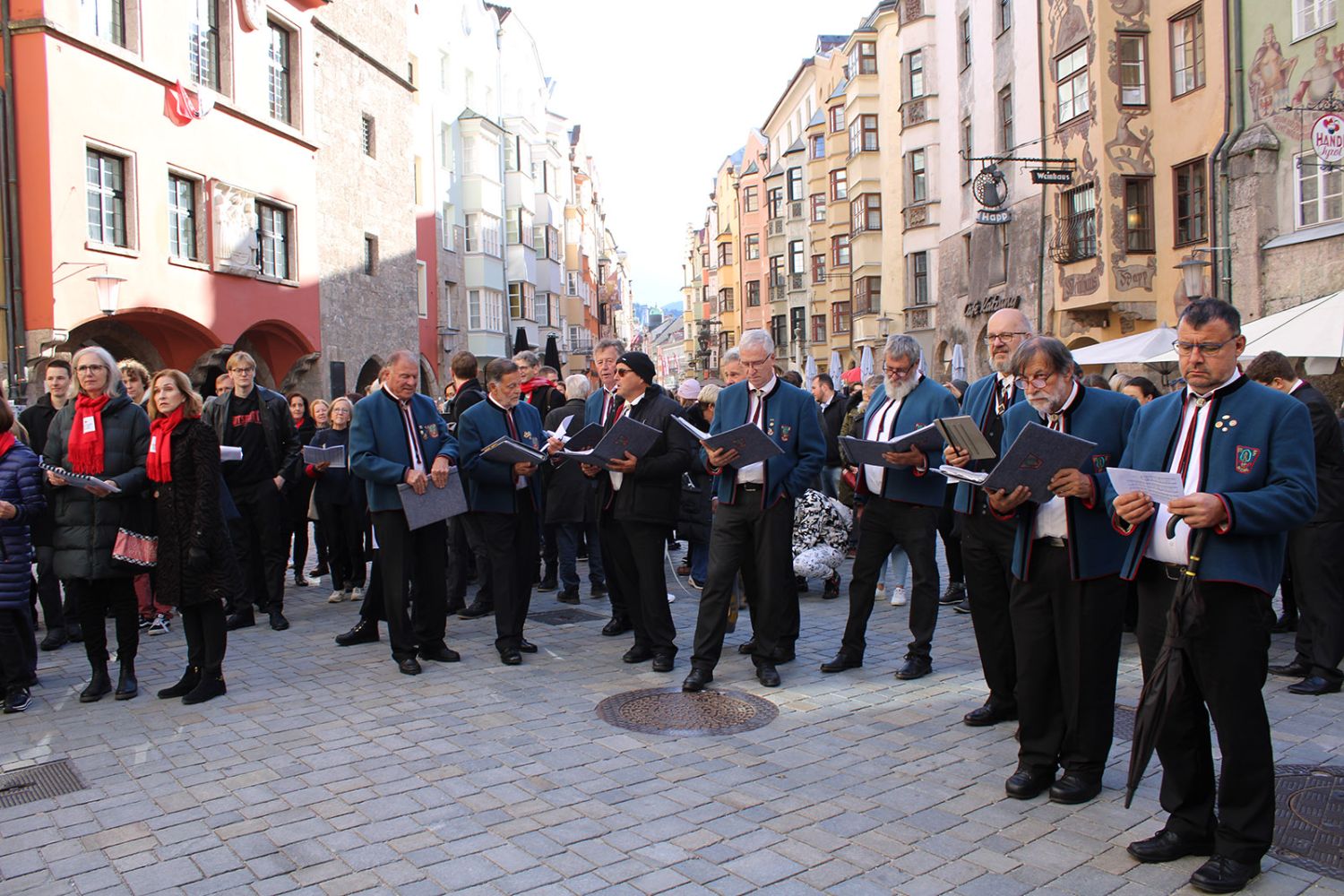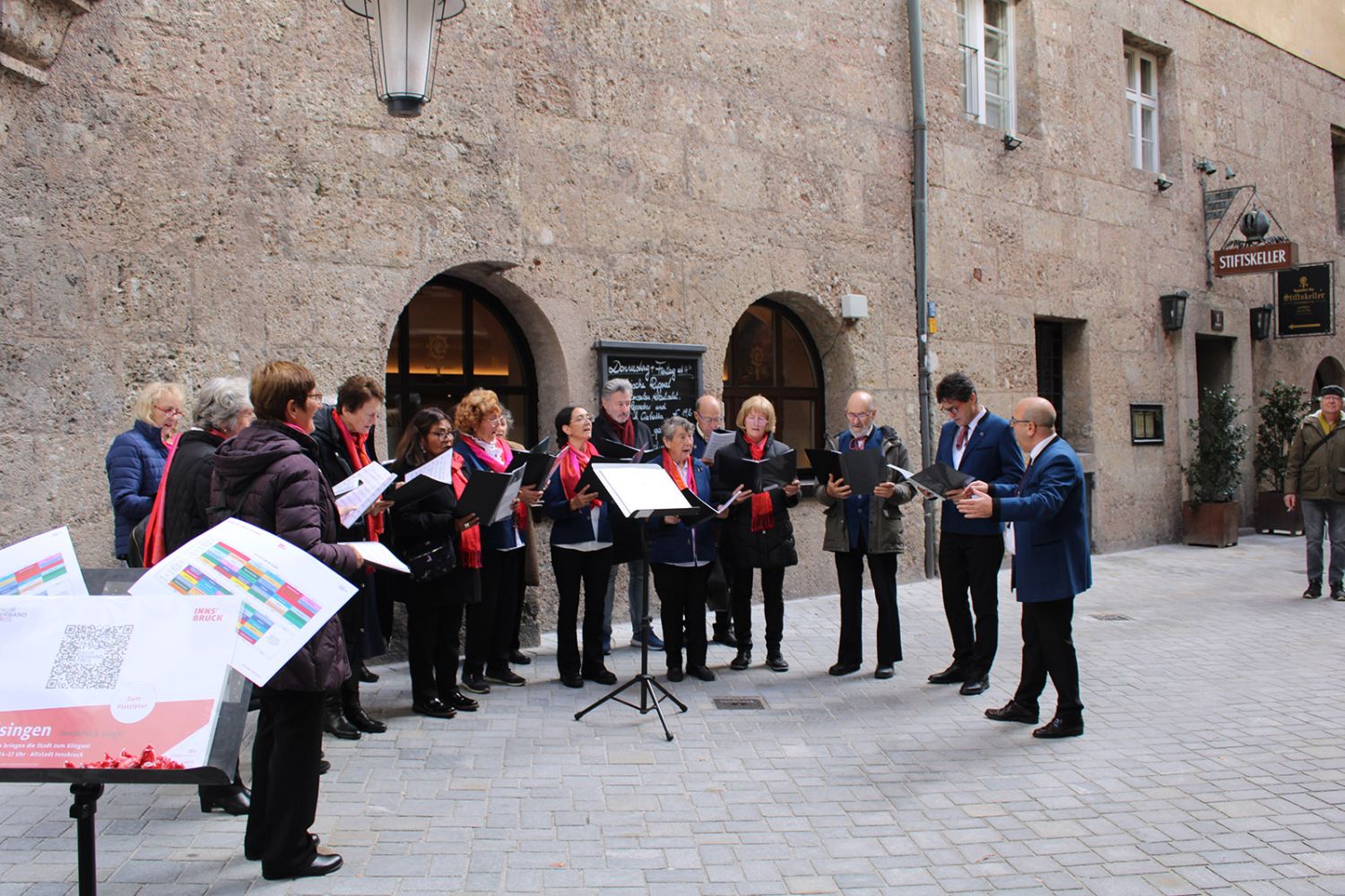 Ein klangschönes Platzlsingen von Chören des Chorverband Tirol erfreute die Zuhörerinnen und Zuhörer am 26. Oktober 2025 in der Innsbrucker Altstadt.