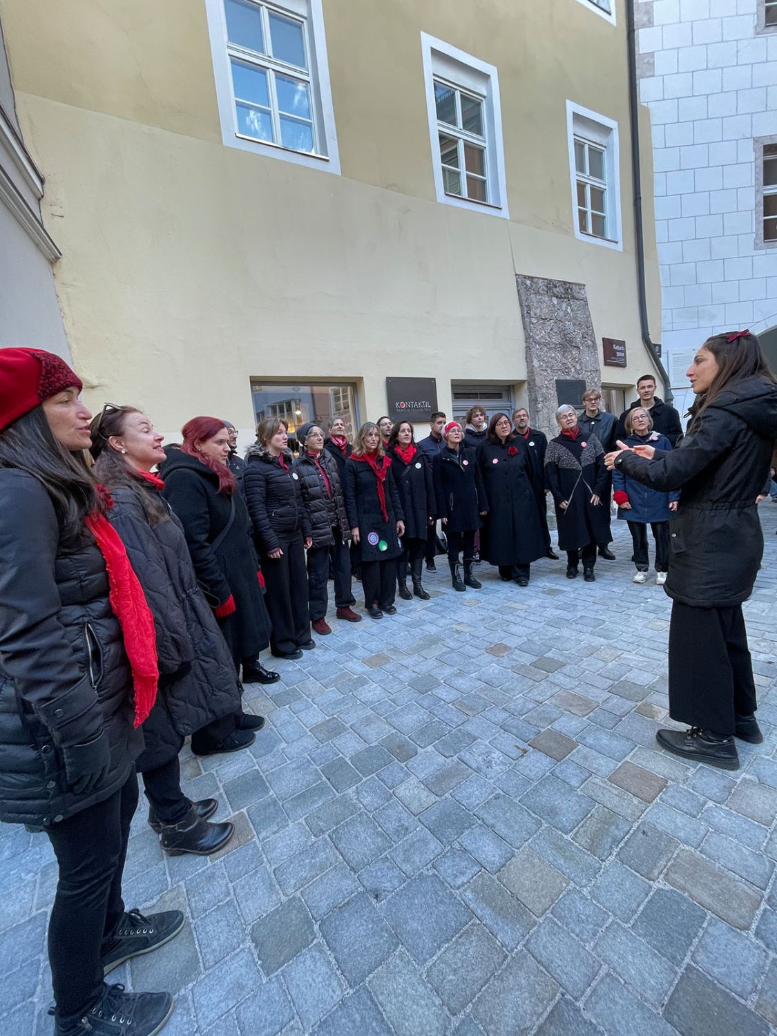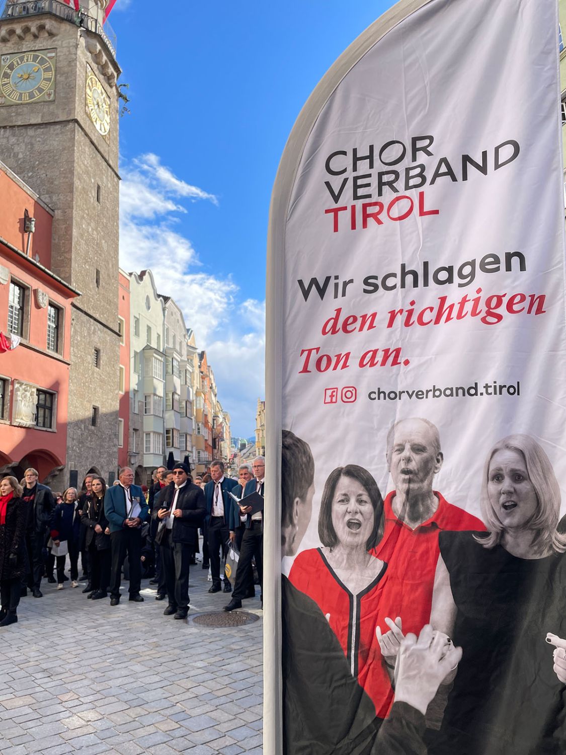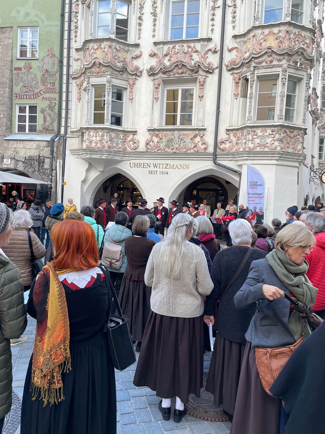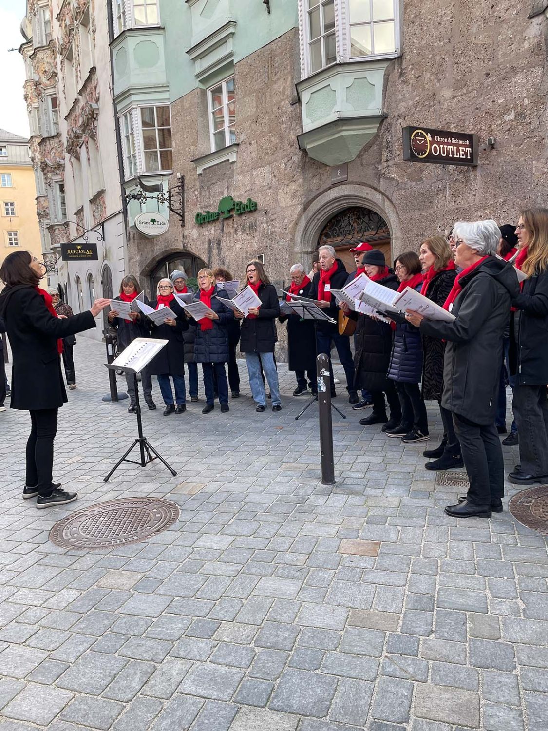 Ein klangschönes Platzlsingen von Chören des Chorverband Tirol erfreute die Zuhörerinnen und Zuhörer am 26. Oktober 2025 in der Innsbrucker Altstadt.