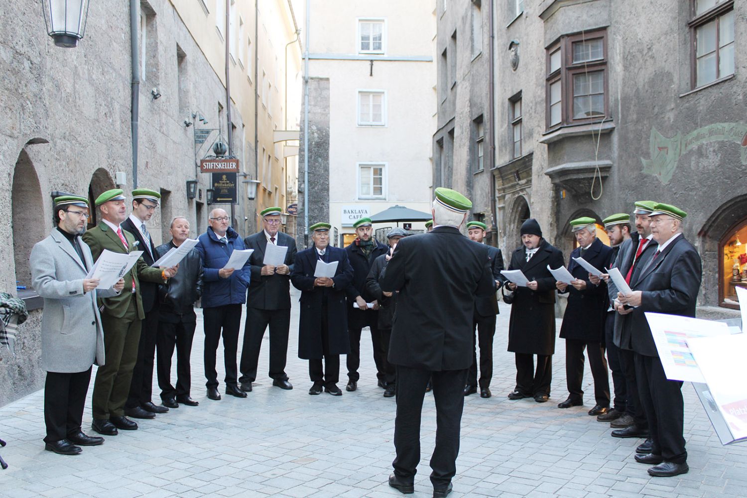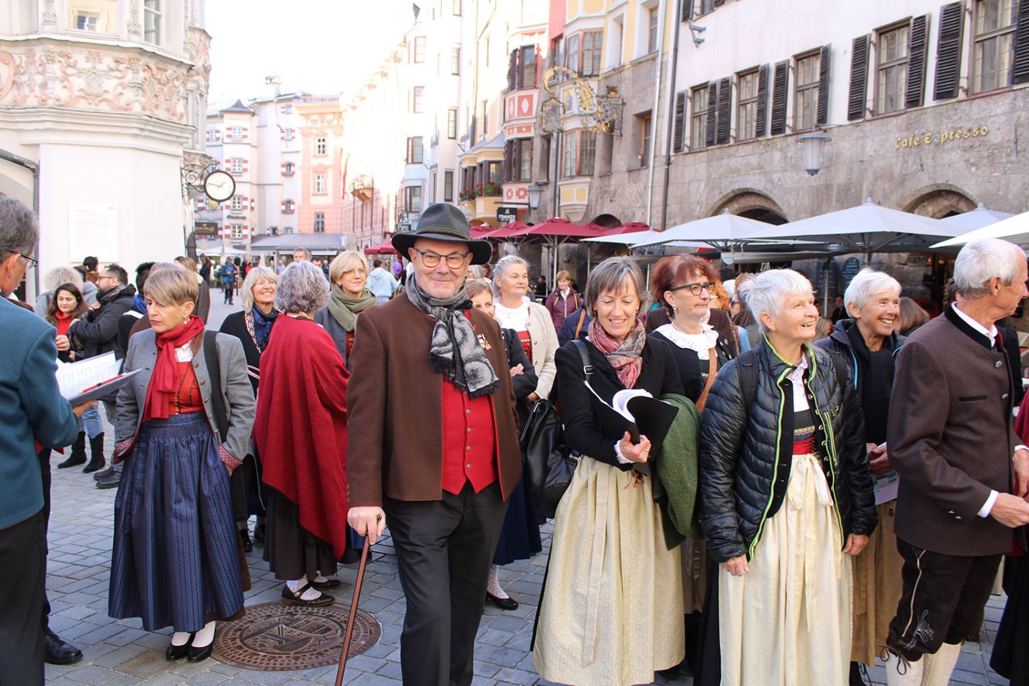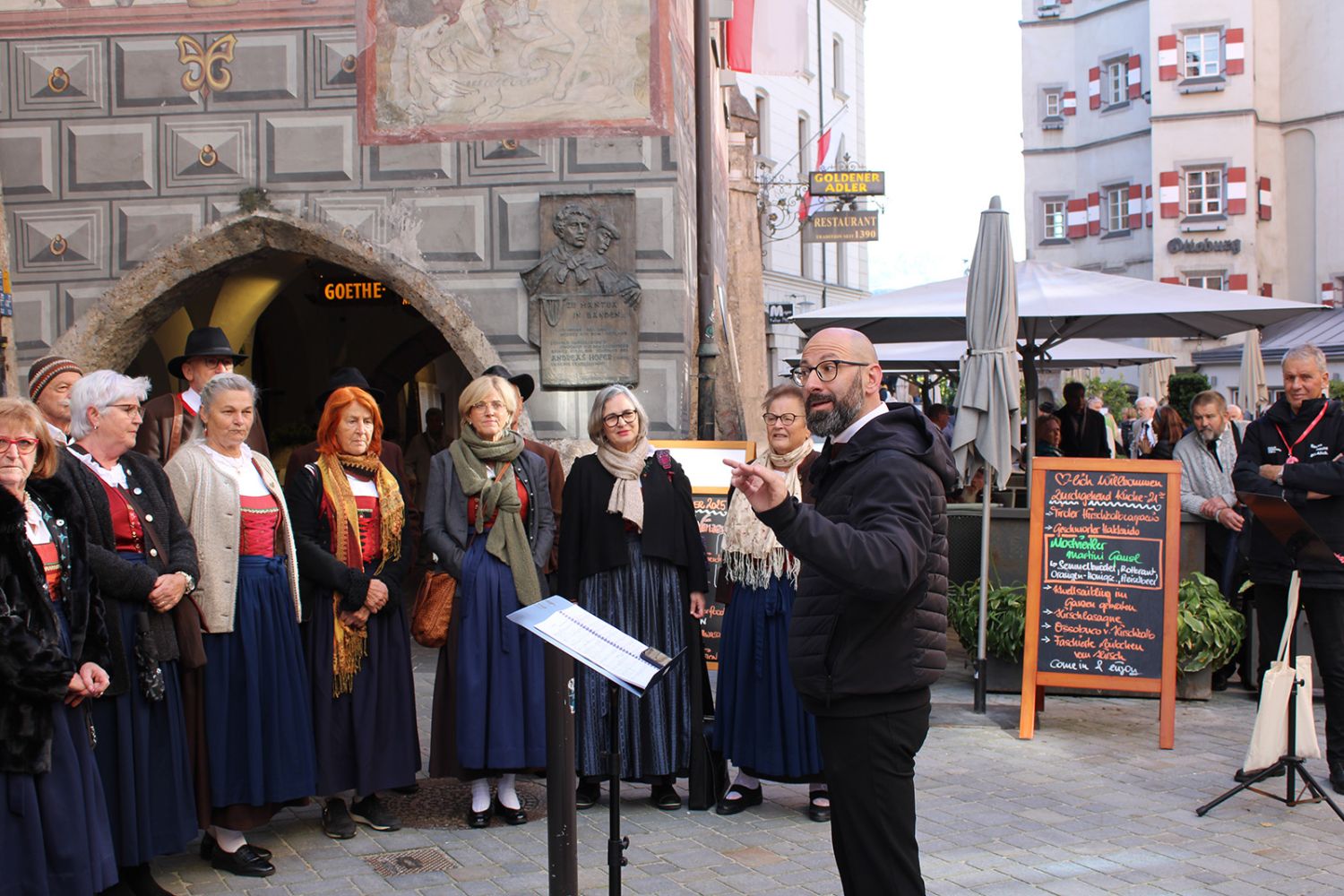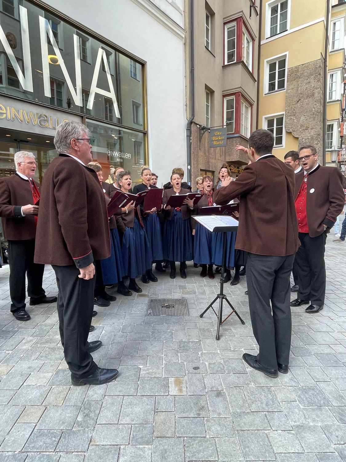 Ein klangschönes Platzlsingen von Chören des Chorverband Tirol erfreute die Zuhörerinnen und Zuhörer am 26. Oktober 2025 in der Innsbrucker Altstadt.