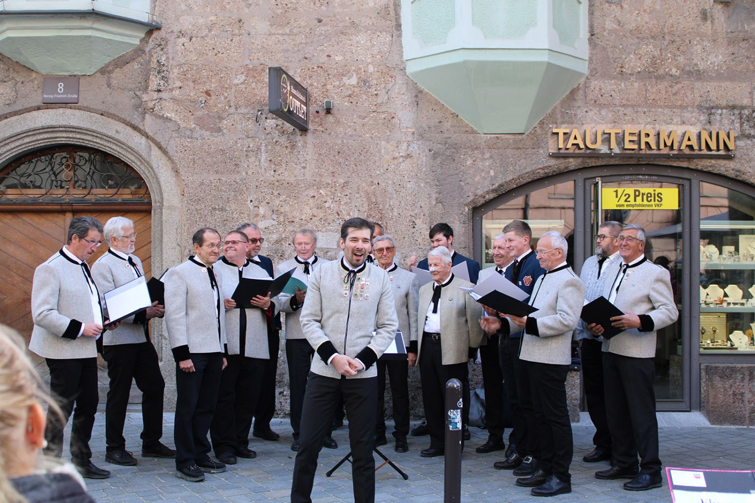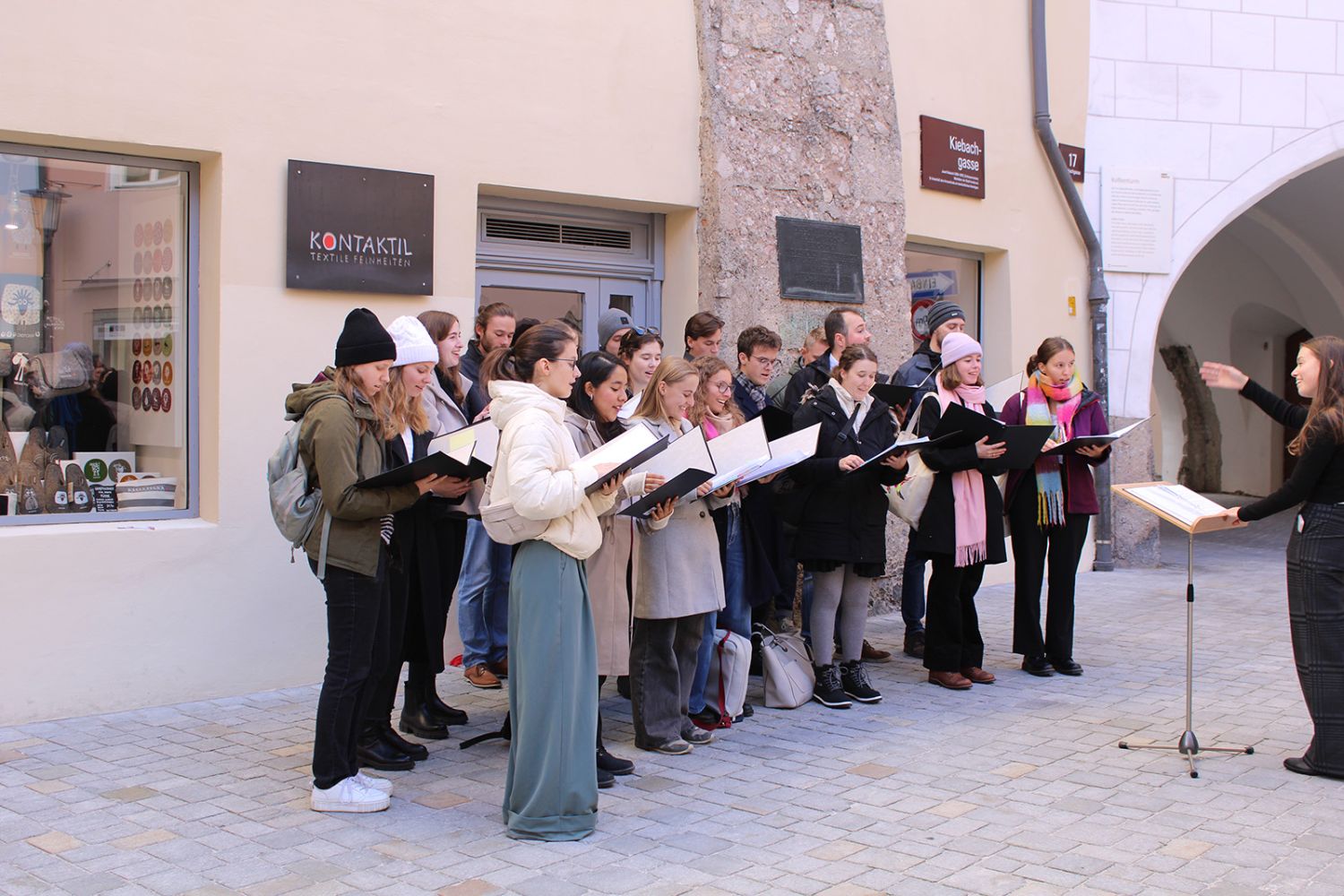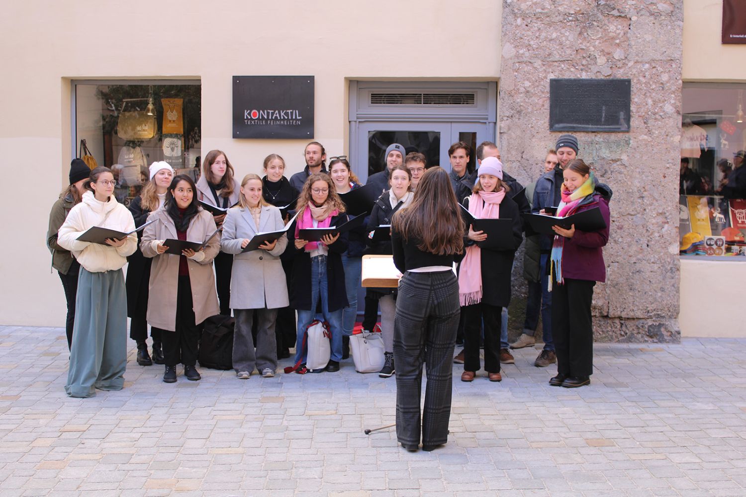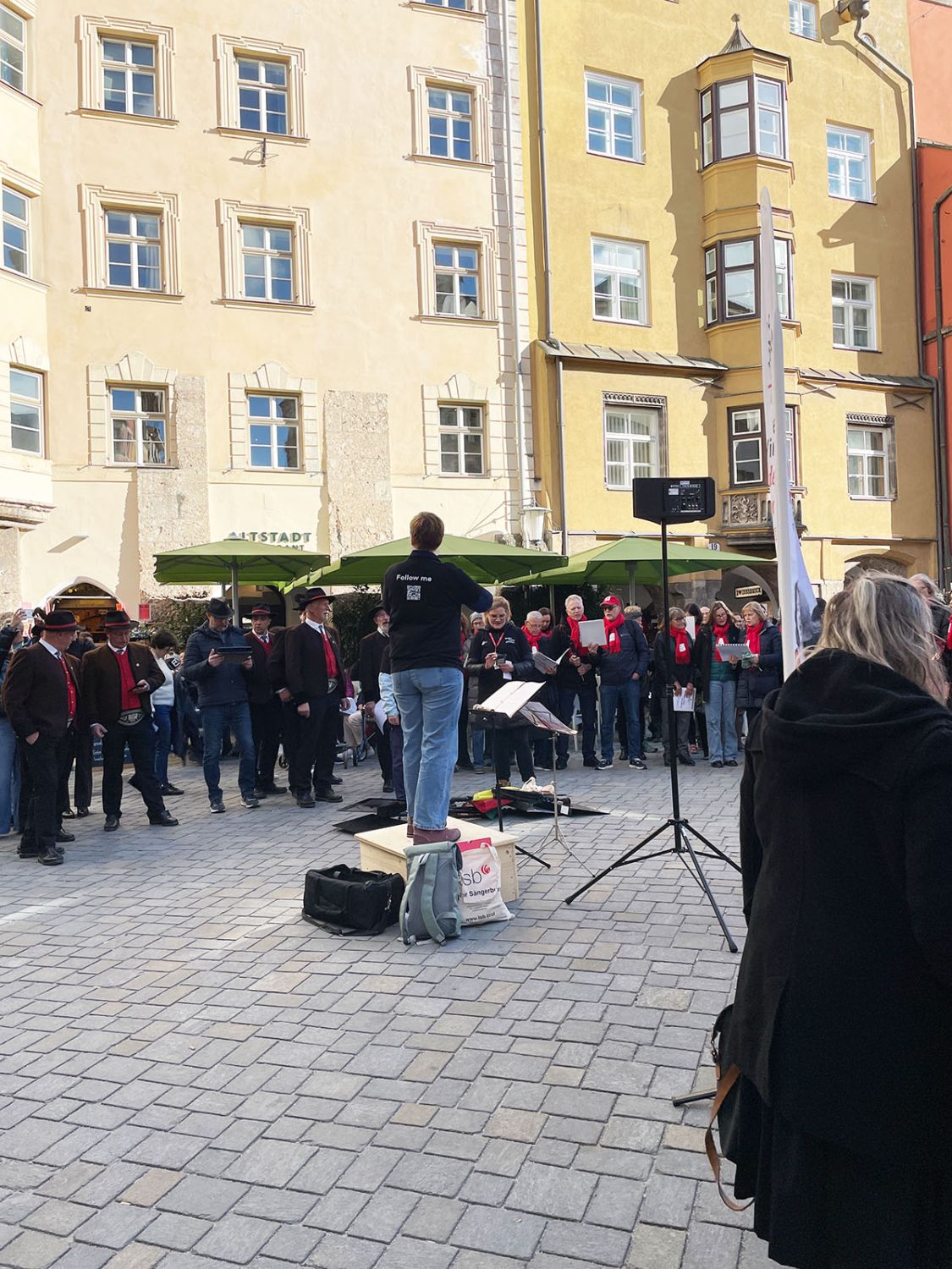 Ein klangschönes Platzlsingen von Chören des Chorverband Tirol erfreute die Zuhörerinnen und Zuhörer am 26. Oktober 2025 in der Innsbrucker Altstadt.